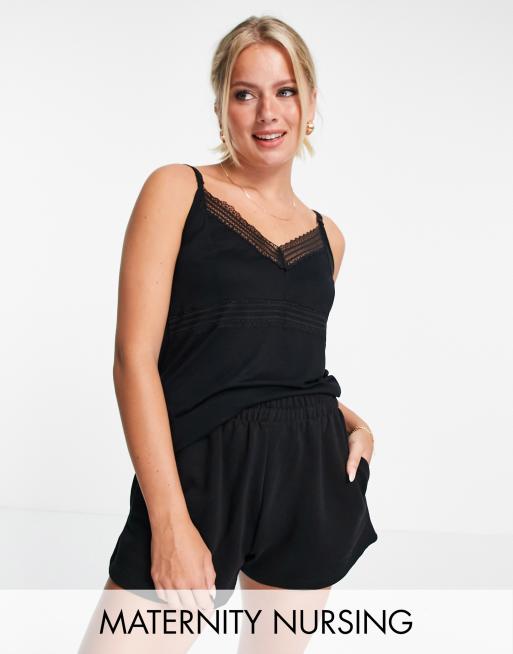 ASOS DESIGN Maternity – Svart amningslinne med spännen och spetskant