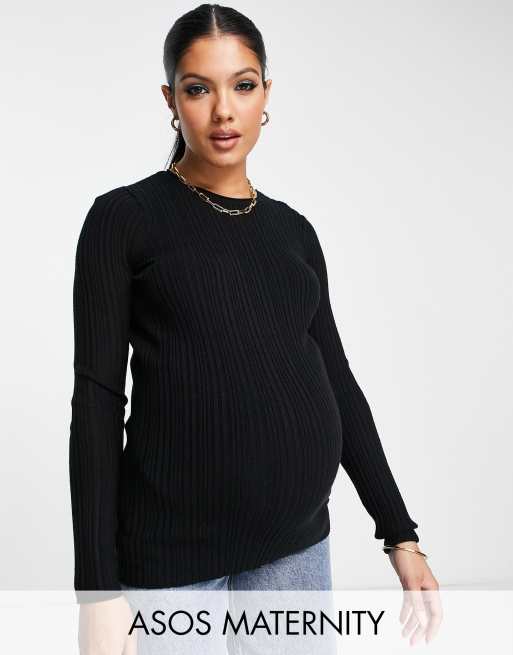 ASOS DESIGN Maternity – Svart ribbstickad topp med rund halsringning