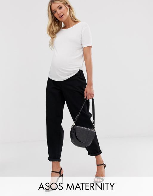 ASOS DESIGN Maternity – Svarta boyfriendjeans med avsmalnande ben, krökta sömmar och dolt midjeband