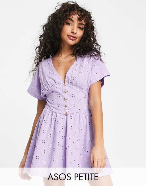ASOS DESIGN – Ljuslila mini-teaklänning med knäppning och broderie anglaise