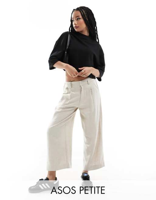 ASOS DESIGN Petite – Beige culotte-byxor i dad-modell