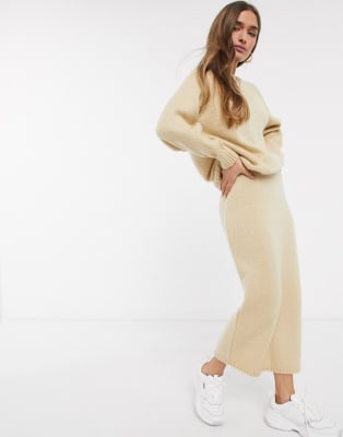 ASOS DESIGN Petite – Gräddvitt stickat set med tröja och kjol