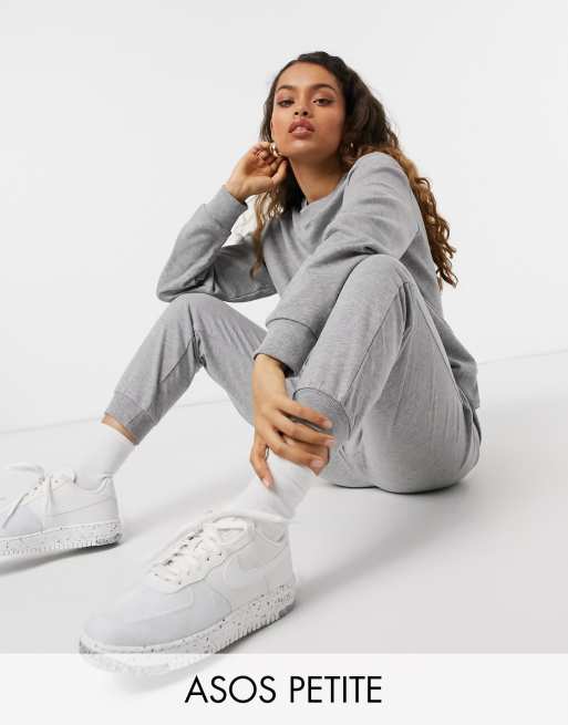 ASOS DESIGN Petite – Gråmelerad träningsoverall i smal passform med sweatshirt och mjukisbyxor