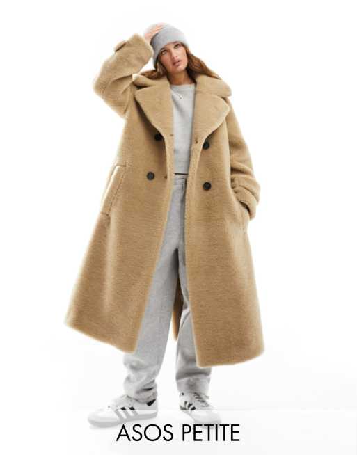 ASOS DESIGN Petite – Havrefärgad lång teddykappa
