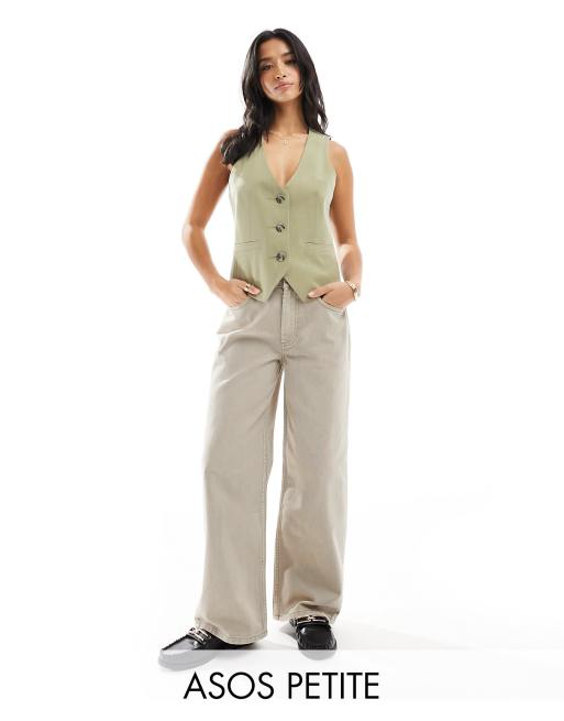 ASOS DESIGN Petite – Neutrala dad jeans med vida ben