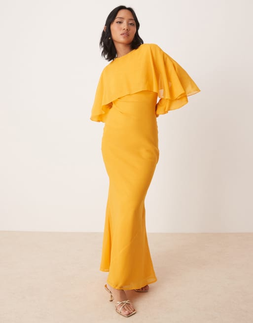 ASOS DESIGN Petite – Orange, diagonalskuren maxiklänning med långa ärmar, volang och cape
