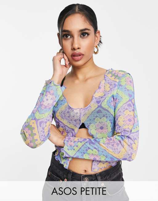 ASOS DESIGN Petite – Pastellfärgad virkad meshtopp med slits framtill - MULTI