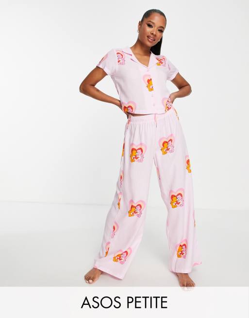 ASOS DESIGN Petite – Rosa pyjamas i modal med skjorta och byxor med "Krambjörnarna"-tryck