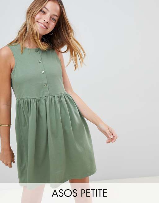 ASOS DESIGN - Petite - Smockklänning utan ärm med knappar