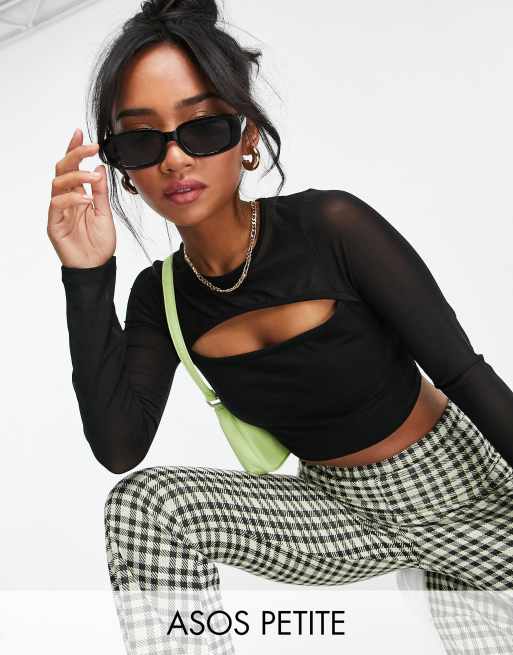 ASOS DESIGN Petite – Svart crop top med utskurna detaljer