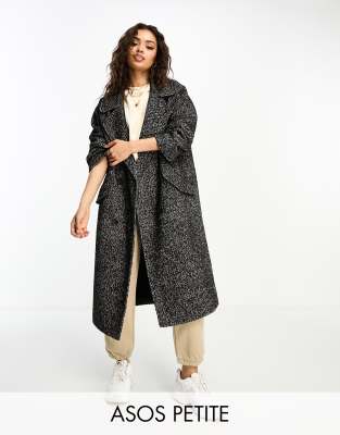 ASOS DESIGN Petite – Svart, fiskbensmönstrad kappa i oversize