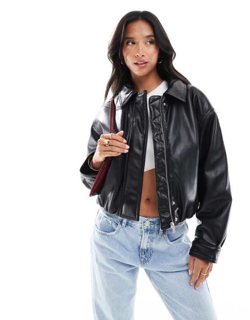 ASOS DESIGN Petite – Svart, stilren bomberjacka i läderlook