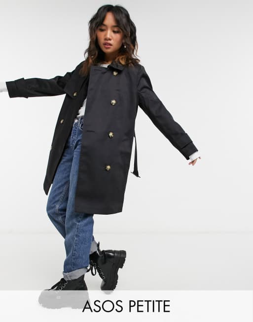 ASOS DESIGN Petite – Svart trenchcoat