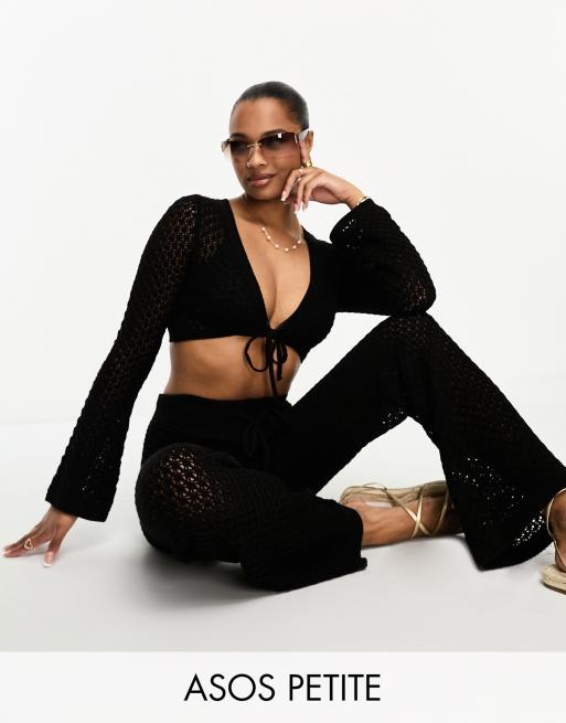 ASOS DESIGN Petite – Svart virkad kofta med knytning framtill