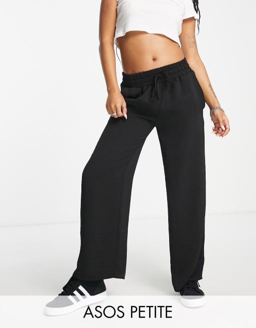 ASOS DESIGN Petite – Svarta byxor med vida ben i dra på-stil