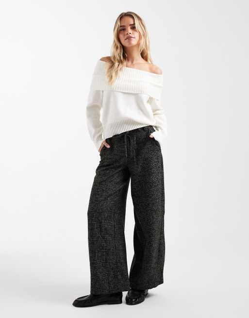 ASOS DESIGN Petite – Svartvita, rutiga byxor med textur, barrelben och dekorativ söm