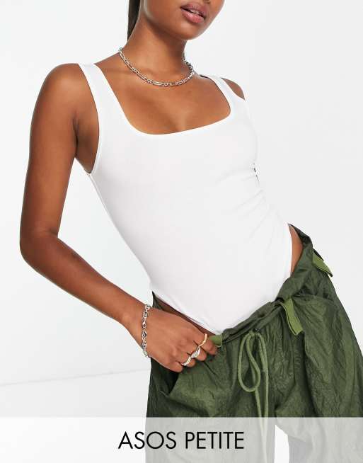 ASOS DESIGN Petite – Vit ärmlös body med djup urringning