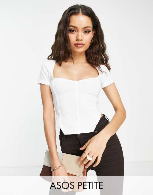 ASOS DESIGN Petite – Vit kortärmad korsettopp med extra bred halsringning