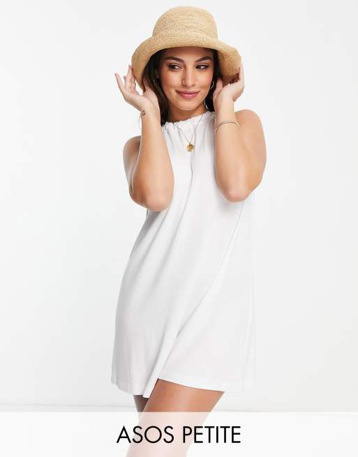 ASOS DESIGN Petite – Vit miniklänning med indragen hals och öppen rygg