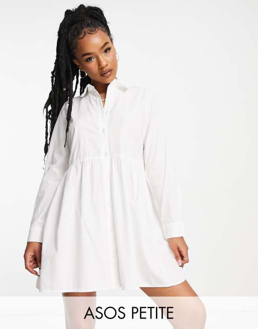 ASOS DESIGN Petite – Vit skjortklänning i bomull och minimodell med smock