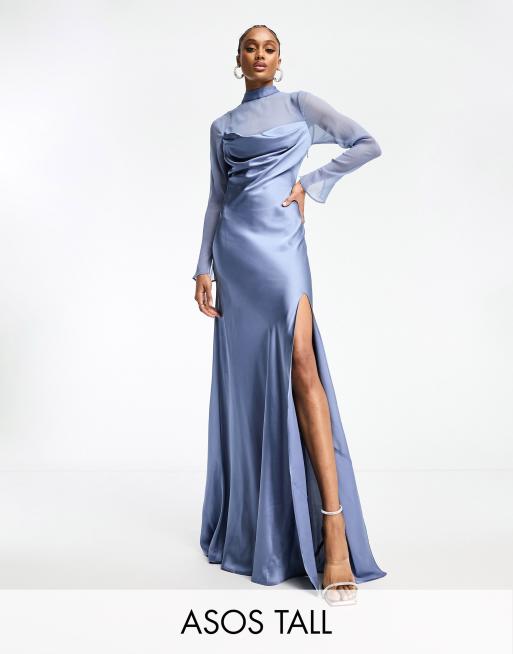 ASOS DESIGN Tall – Blå maxiklänning med drapering i satin med underlager av chiffong