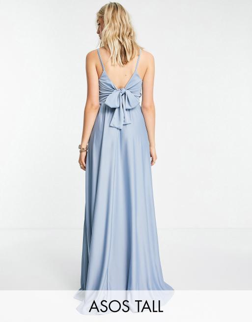 ASOS DESIGN Tall – Blekblå midiklänning med smala axelband, knytning baktill och djup ringning