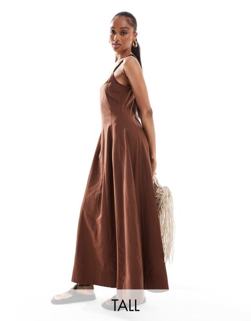 ASOS DESIGN Tall –Chokladbrun sundress i lång tennismodell med dekorativ söm