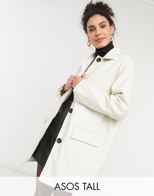 ASOS DESIGN Tall – Gräddvit skjortjacka i oversize av läderimitation med kviltat foder
