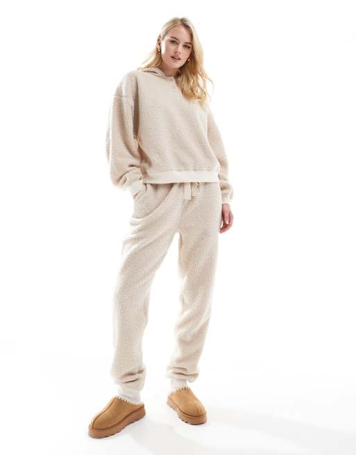 ASOS DESIGN Tall – Gräddvitt mysset i teddy med huvtröja och mjukisbyxor i oversize