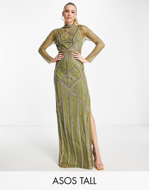 ASOS DESIGN Tall – Khakigrön maxiklänning med ergonomisk design och utsmyckning
