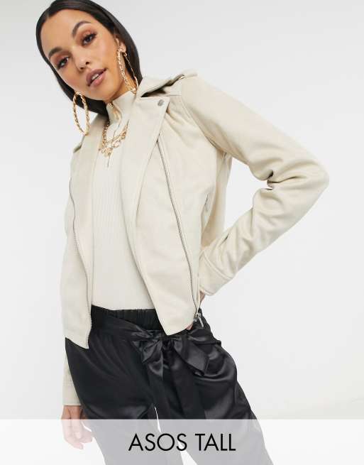 ASOS DESIGN Tall – Ljusbeige bikerjacka i mockaimitation