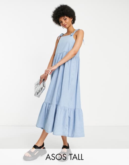 ASOS DESIGN Tall – Ljusblå midiklänning i mjuk denim med smock
