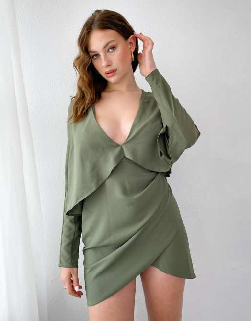 ASOS DESIGN Tall – Miniklänning med omlottkjol, cape och tunna axelband