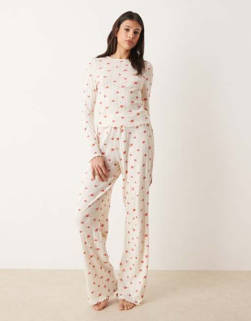 ASOS DESIGN Tall – Mixa och matcha – Småblommiga, pointellestickade pyjamasbyxor