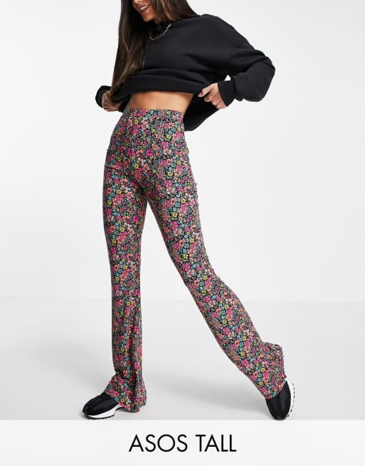 ASOS DESIGN Tall – Mörka blommiga byxor med utsvängd design nedtill