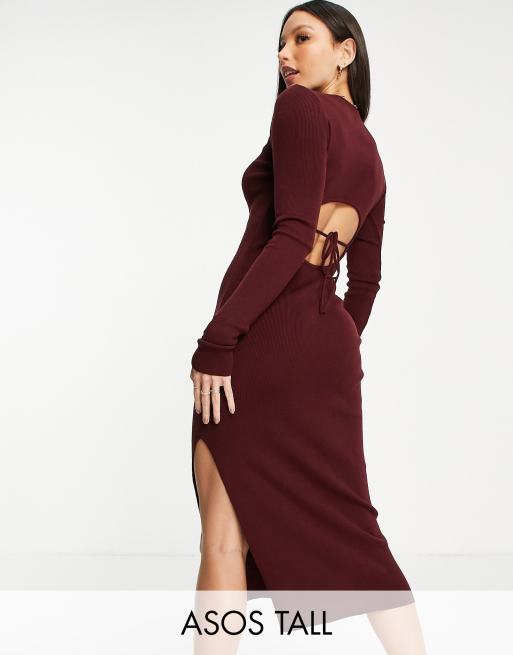 ASOS DESIGN Tall – Mörkröd maxiklänning med öppen rygg