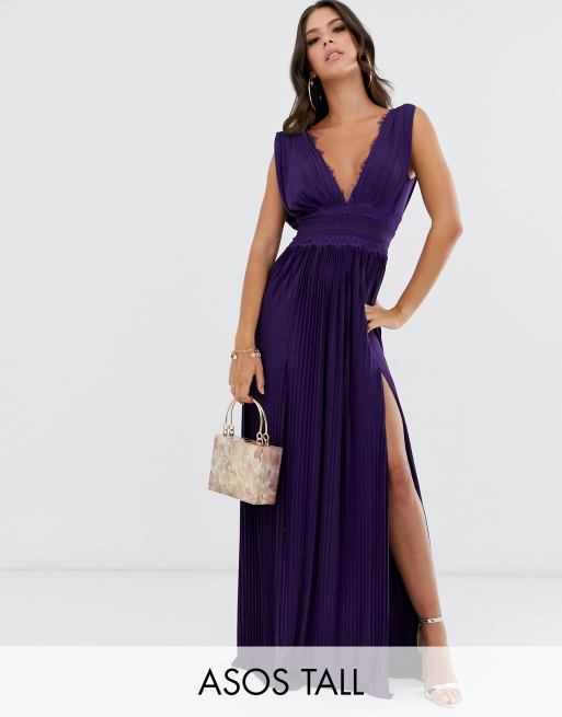 ASOS DESIGN Tall – Premium – Plisserad maxiklänning med spetsinlägg
