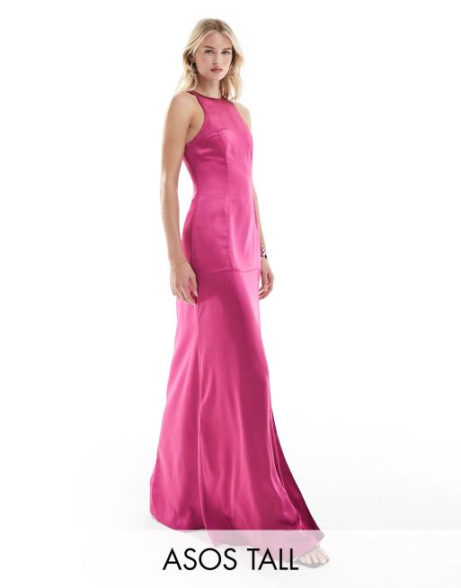 ASOS DESIGN Tall – Rosa maxiklänning i satin med brottarringning och dekorativ söm