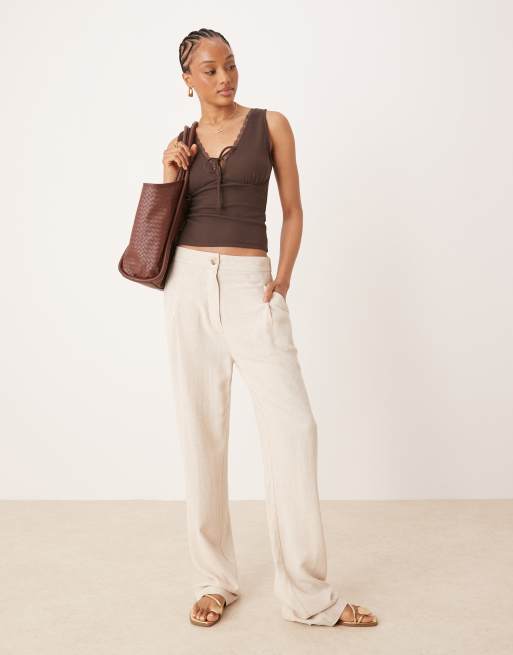 ASOS DESIGN Tall – Stenfärgade, avsmalnande linnebyxor med veck framtill