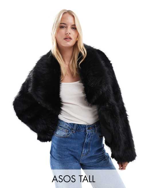 ASOS DESIGN Tall – Svart kort jacka i fuskpäls