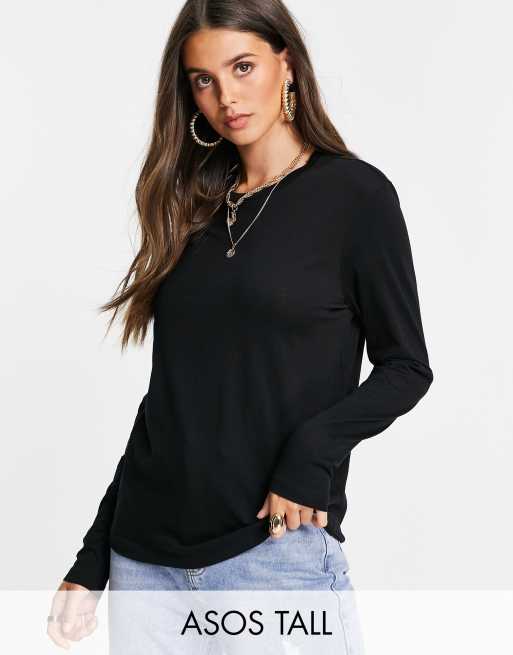ASOS DESIGN - Tall - Svart långärmad t-shirt i bomull - SVART