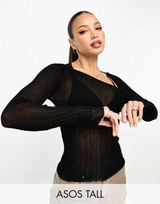 ASOS DESIGN Tall – Svart, skirstickad topp med asymmetrisk ringning