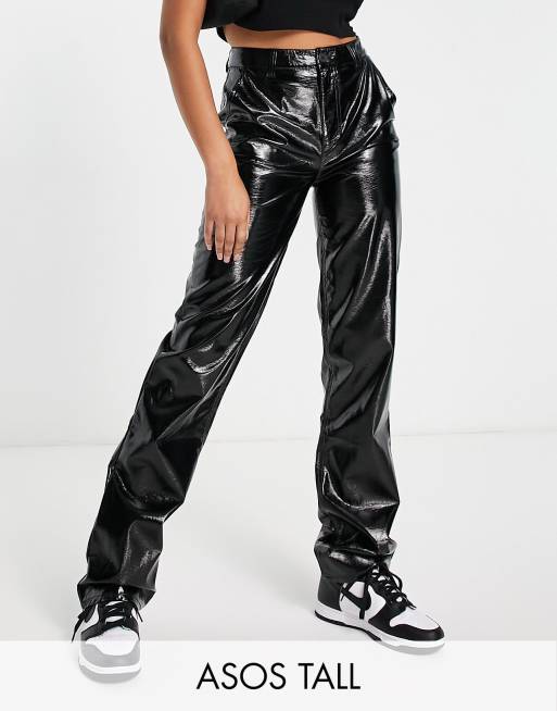 ASOS DESIGN Tall – Svarta, högglansiga byxor i krackelerad vinyl med raka ben