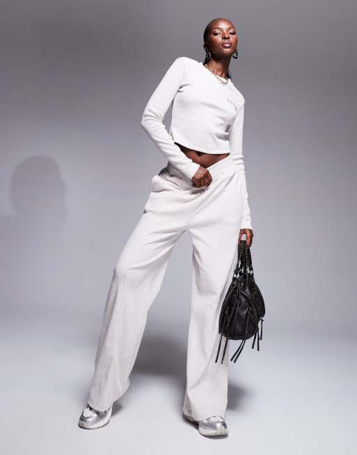 Weekend Collective – Beige, ribbat set med vida mjukisbyxor och långärmad topp