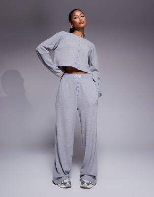 Weekend Collective – Gråmelerade, våffelstrukturerade mjukisbyxor med nylon och vida ben, del av set
