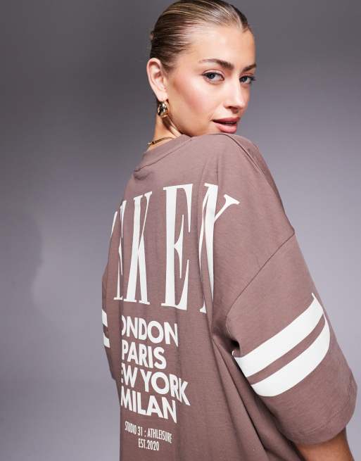 Weekend Collective – Icon – Brun t-shirt i oversize med staplad logga baktill