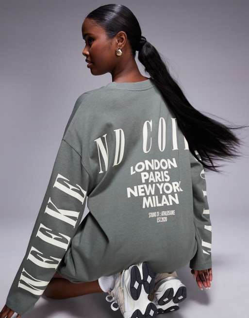 Weekend Collective – Khakifärgad, tvättad t-shirtklänning i oversize med långa ärmar och logga baktill