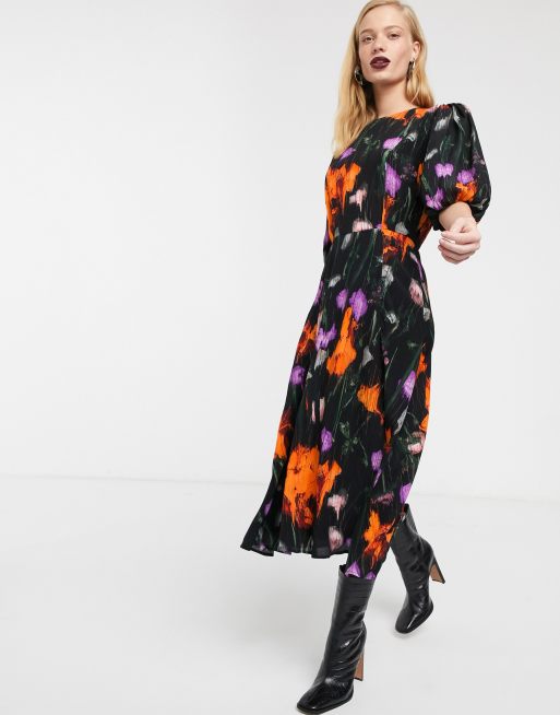ASOS WHITE – Blommig tea-klänning med puffärm