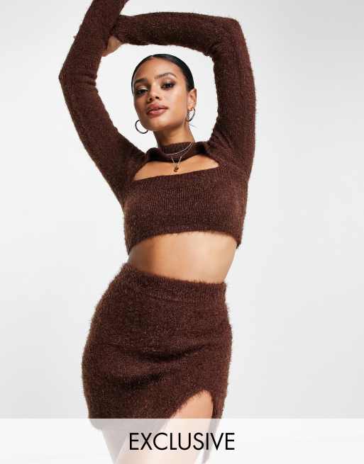 ASYOU – Brun, stickad kjol med sidoslits, del av set