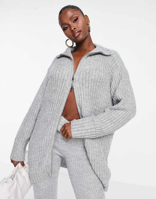 ASYOU – Grå, stickad tröja med ståkrage och dragkedja, del av set